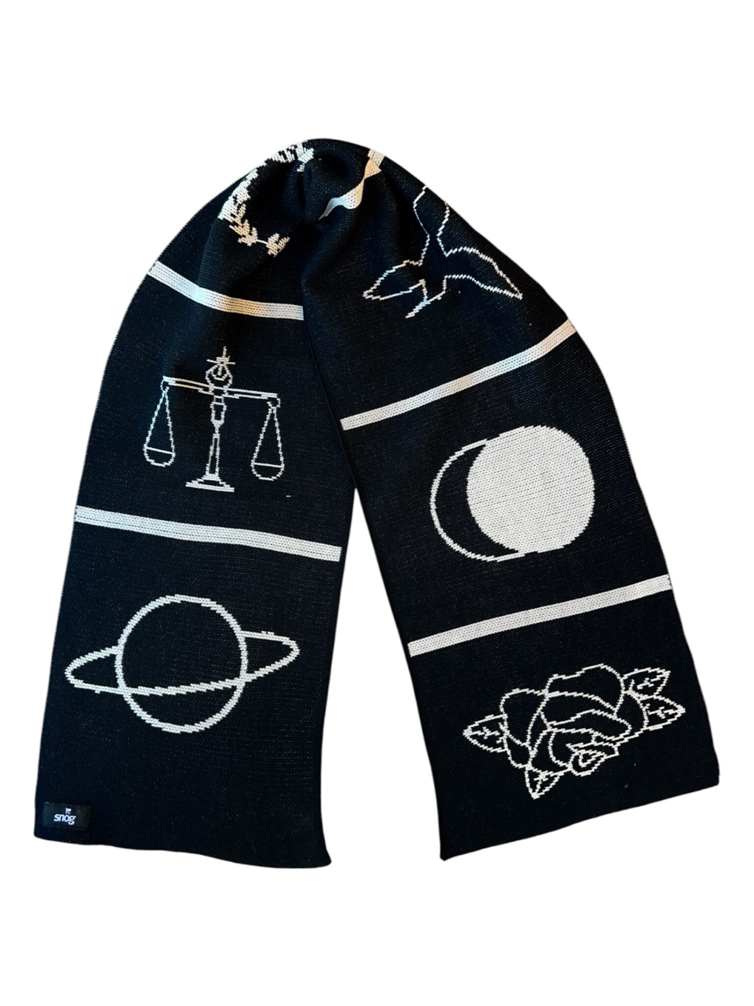 Tejido jacquard fabricado en acrílico de alta calidad y de tacto suave, liviano y cómodo. Su figura fue diseñada y pensada en lo clásico del tejido a mano y figuras formadas en pixeles en una serie que esta inspirada en los conceptos, símbolos y emociones Cada una de estas piezas son tejidas y confeccionadas desde cero en Santiago de Chile. GUÍA DE MEDIDAS Ancho 30cm | Largo 160cm